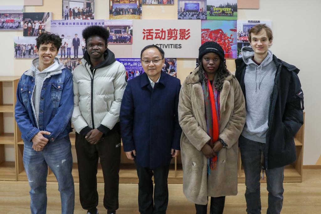 在青藤书院,赵阳向来自俄罗斯、摩洛哥、肯尼亚、马里等国的国际学生致以诚挚的问候和新春的祝福,祝福他们在书院过一个平安快乐的中国年,做好新学期的学习和生活准备。同时,希望他们能进一步了解和感受中国文化、绍兴传统,积极成为城市和学校的代言人,助力学校国际化发展。