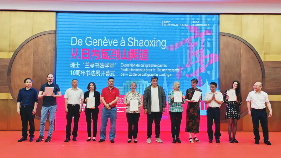 张雪代表绍兴市政府向远道而来的瑞士友人及各位嘉宾致以热烈欢迎,向为文化交流辛勤付出的工作者表达衷心感谢,并宣布展览开幕。她表示绍兴因《兰亭集序》成书法文化地标,又因“兰亭书法学堂”搭建起中瑞文化交流桥梁,让瑞士学员不仅掌握书法技法,更领略到 “天人合一”“刚柔并济” 的东方智慧,同时也让中国感受到艺术无国界的魅力,实现了双向的文化交流与对话。未来,绍兴将以书法为桥,深化国际文化交流,让这座城市成为世界文明互鉴的舞台。