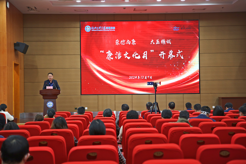 为深入学习宣传贯彻落实党的二十届三中全会精神和习近平总书记关于新时代廉洁文化建设的重要论述,巩固提升党纪学习教育成果,深入推进清廉医院建设,12月9日下午,附属医院2024年度“廉洁文化月”开幕式在行政楼二楼报告厅举行。校纪委副书记、纪检监察室主任、党委巡察办主任封国强,医院领导班子成员、纪委委员、一级职能处室和二级职能科室负责人、首席专家、大科主任、临床、医技科室主任、护士长、支部书记、网格监督员、“廉洁文化优秀作品”获奖代表等参加开幕式。开幕式由医院纪委书记凌坚主持。