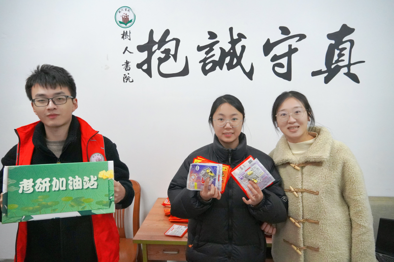 暖心礼包传递关爱。文澜书院、树人书院、竞雄书院师生充分考虑考研学子的实际需求,精心准备考研暖心大礼包,涵盖学习用具、提神用品、冬日暖身物品等,点滴中传递关爱与温情。