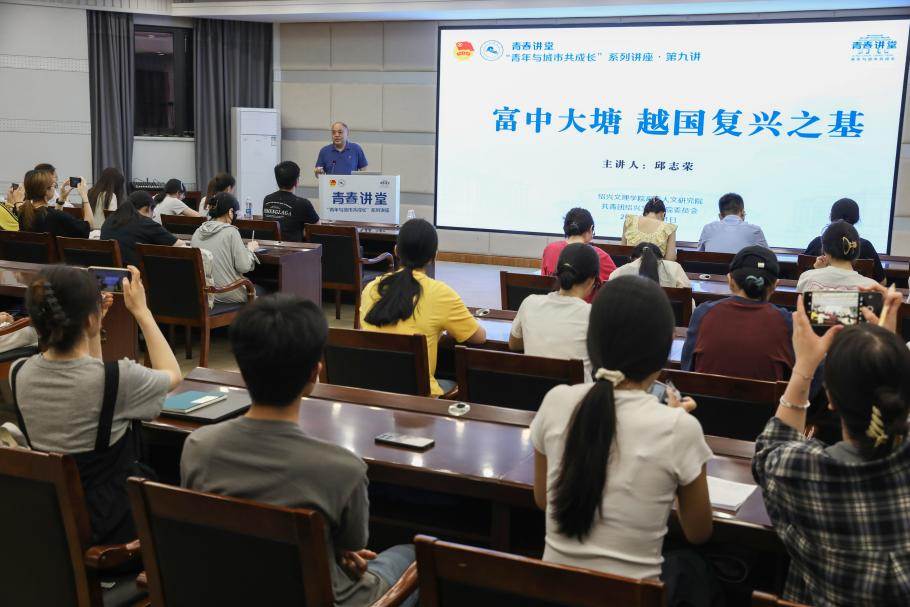 5月21日晚青春讲堂“青年与城市共成长”系列讲座第九讲,中国水利学会水利史研究会副会长、浙江省大运河文化专家邱志荣以“富中大塘 越国复兴之基”为题,深入剖析富中大塘在越国发展历程中的重要地位及其深远影响,引发师生对越国历史文化的浓厚兴趣与深入思考。