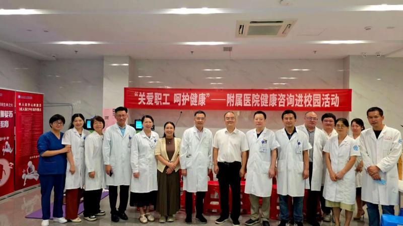 9月30日下午,附属医院医学专家一行18人来到学校师生服务大厅,开展关心关爱教职工、健康咨询进校园活动。本次活动由校工会、机关党委、附属医院联合组织开展。校党委副书记黄坚亲临活动现场。