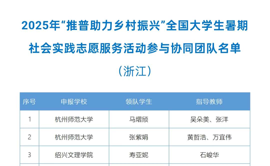 近日,在教育部语言文字应用管理司、共青团中央青年发展部联合开展的2025年“推普助力乡村振兴”全国大学生暑期社会实践志愿服务活动中,我校教育与心理学院“山海同声”实践团成功入选重点团队,“山花守望”实践团成功入选参与协同团队。