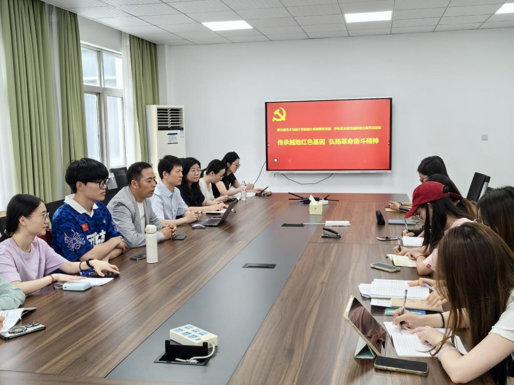 为纪念中国人民抗日战争暨世界反法西斯战争胜利80周年,探讨红色文化与艺术教育的融合路径,近日,蔡元培艺术与设计学院设计系教师党支部联合学生党支部在美术楼301开展“传承越地红色基因 弘扬革命奋斗精神”党建联建主题党日活动。